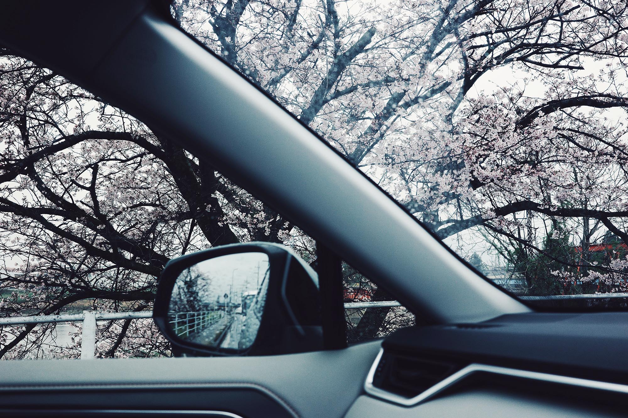 左にも桜。(雨の日)