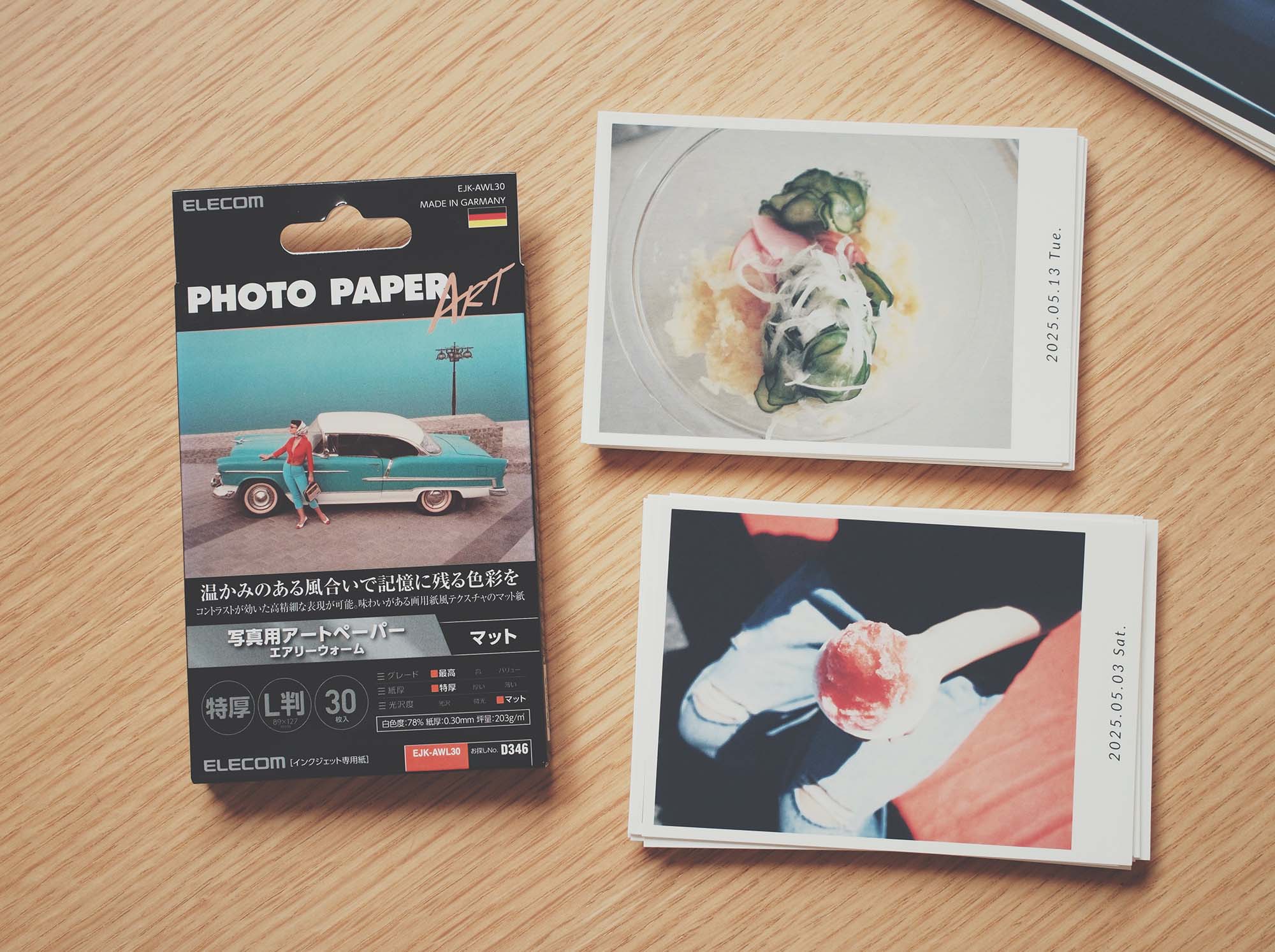 どこでも買えてお手頃な紙ということで、エレコムのアートペーパー(エアリーウォーム)を使うことにした。量販店にあるものではこれが一番分厚い(それでも少し物足りないが)。ドイツ製と書いてあるとなにか強そうな感じがするな。