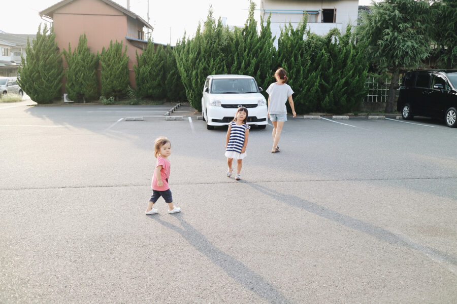 道路の脇をふたりで歩くときは、うしろをゆっくりついていく。少しずつ歩く速度をゆるめて距離をあける。そっとカメラを構えて距離を合わせる。しばらくすると近くに居ないことがばれる。振り向いたところを写真に撮る。 上の写真からは…