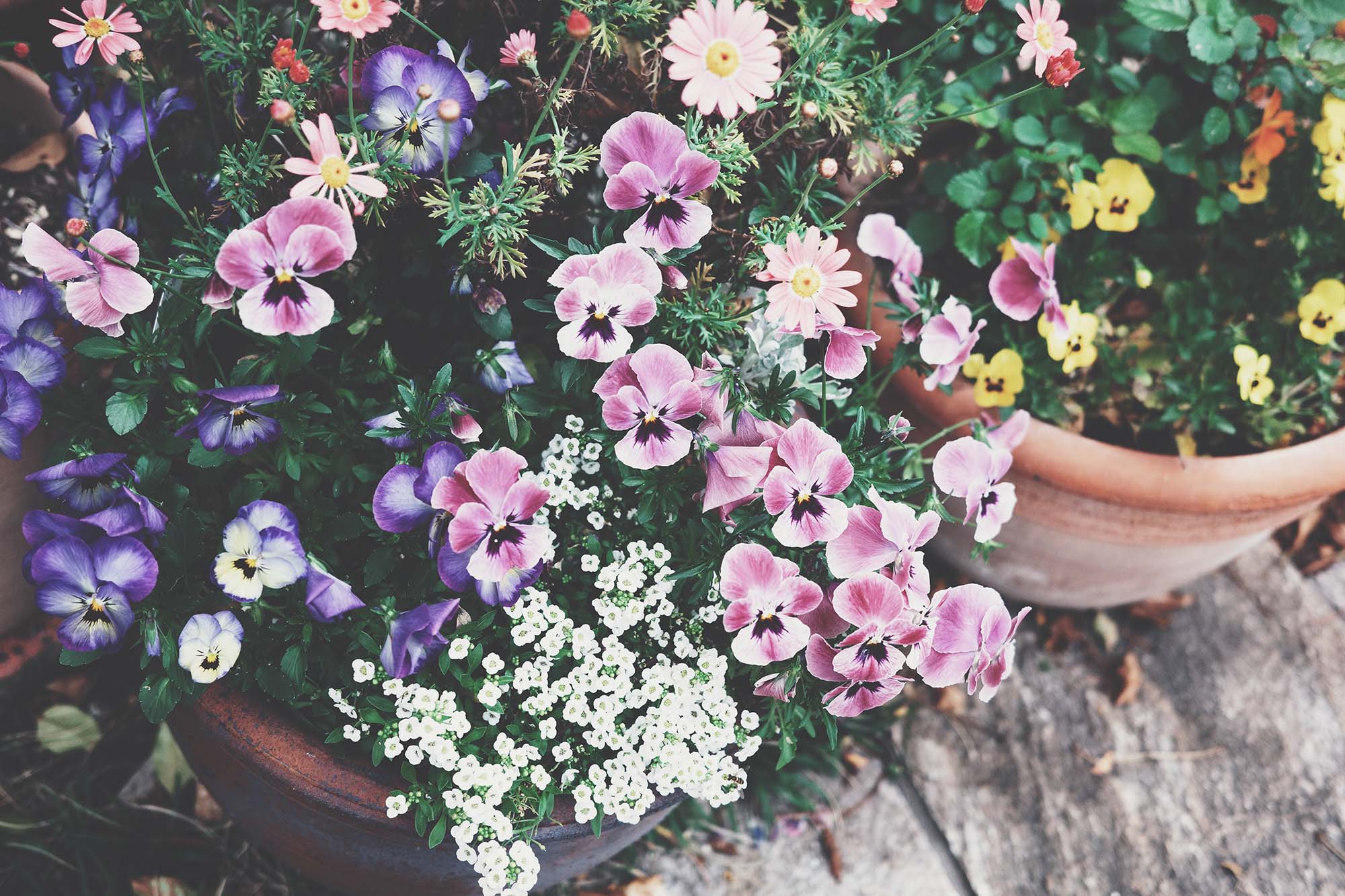 ビオラは個人的に好きな花のひとつ。横に白いアリッサムがあるとまとまるなぁ。