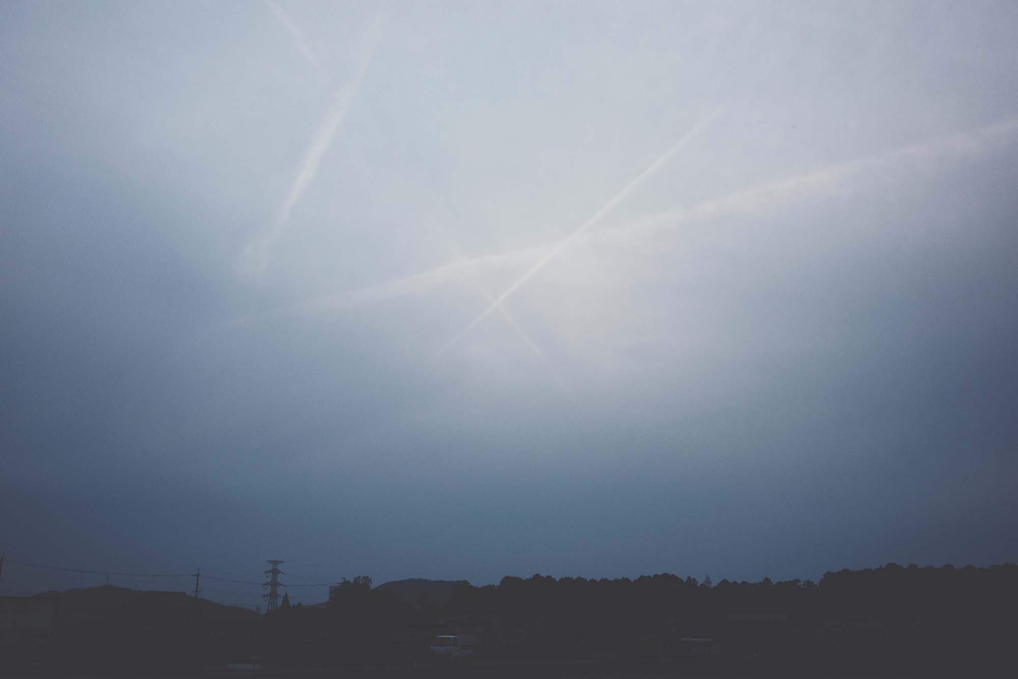 飛行機雲が重なっていた。さて世間はゴールデンウィーク。