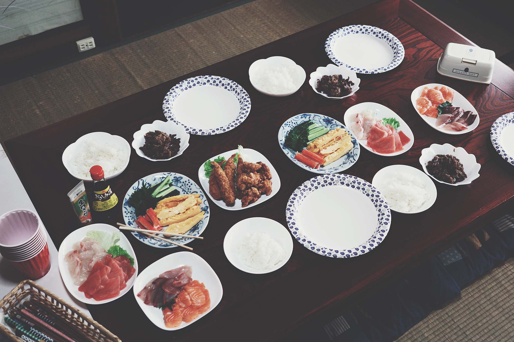 いつもの手巻き!お刺身が嬉しいのだ。紙のお皿が初登場。