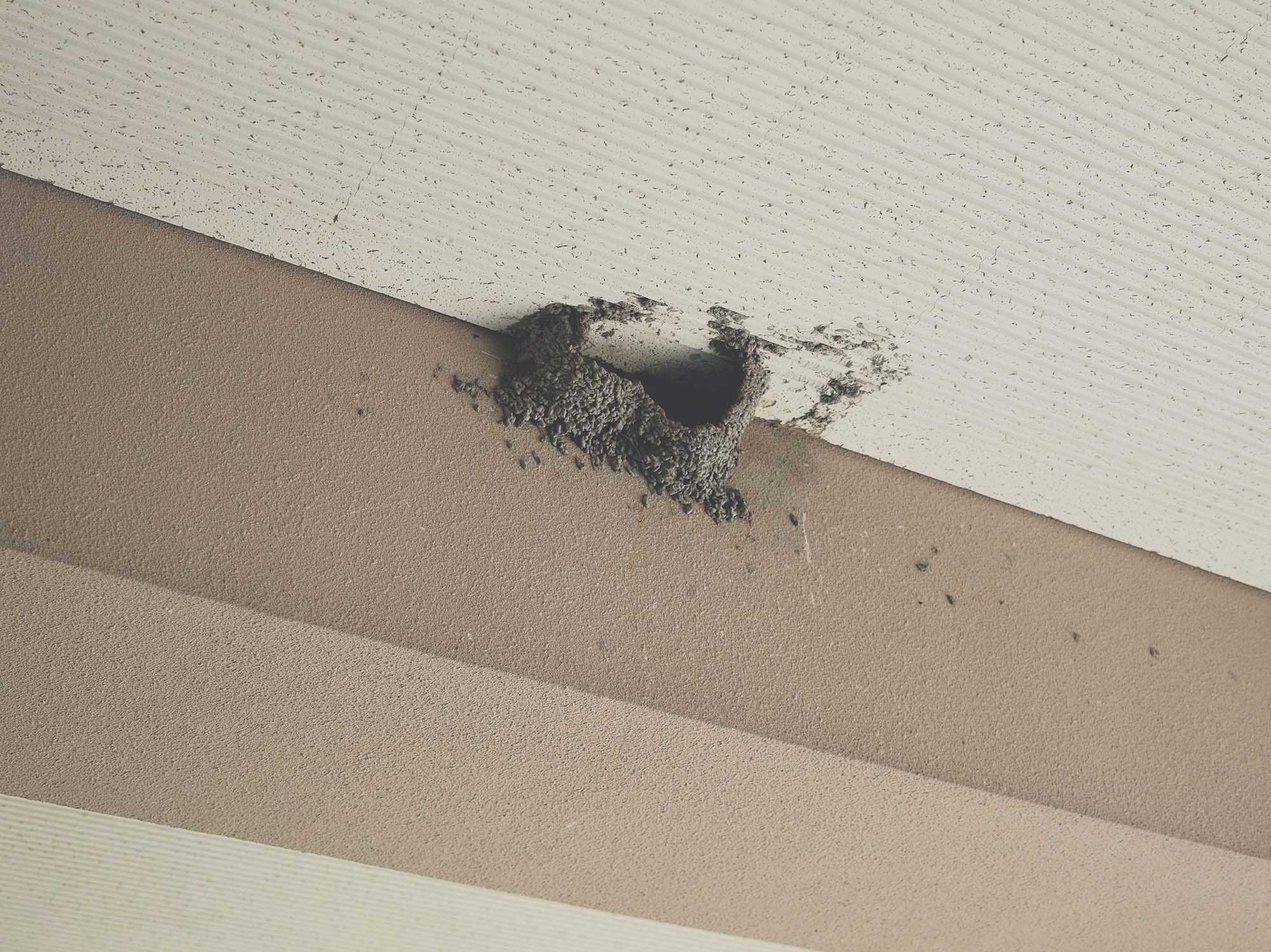 帰ろうと思って上を見たらツバメの巣を見つけた。こんなに広い場所でもドアの近くに作ってある(不思議だ)。
