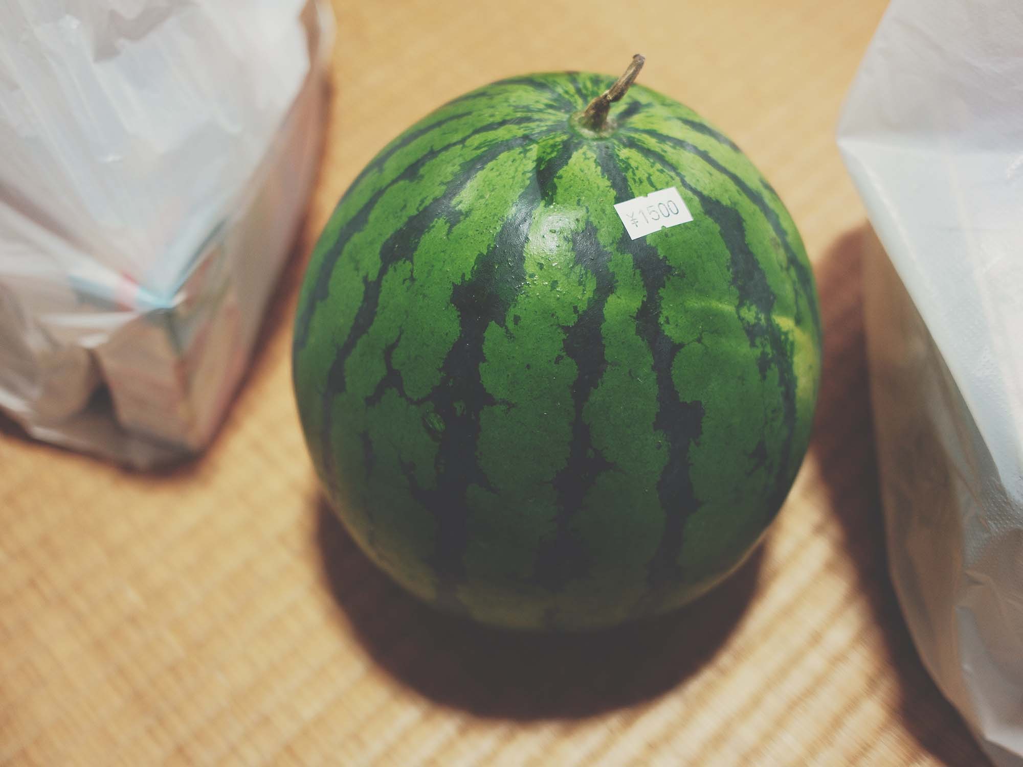 りささんのばあちゃんの誕生日。こころさんがプレゼントを作ったので(紙のバラとフェルトのカステラとオムライス)渡しに行った。そしてスイカをいただいた(¥1500)。