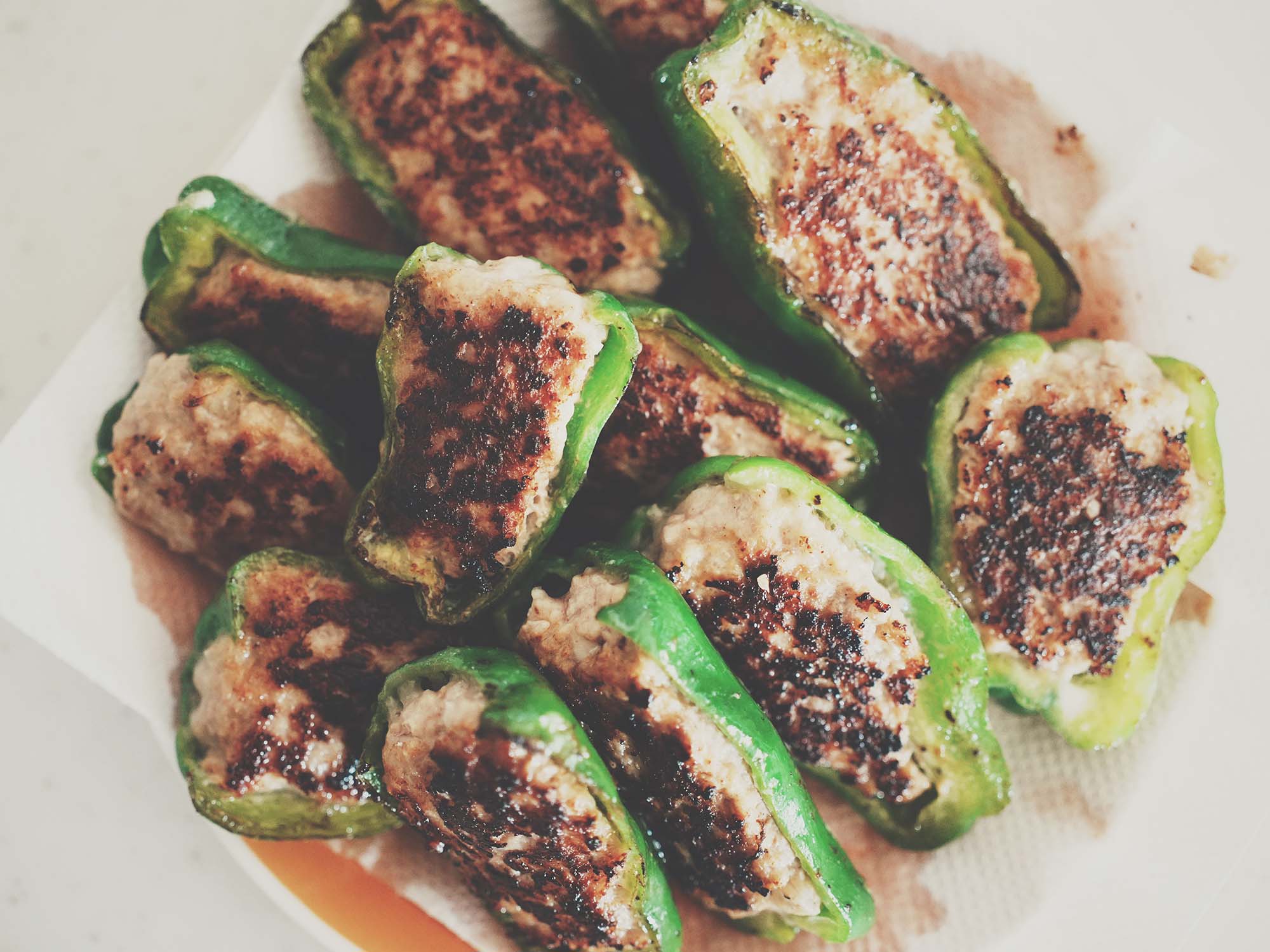 母親と一緒にピーマンの肉詰めの下準備をした(持って帰って焼いて食べた)。
