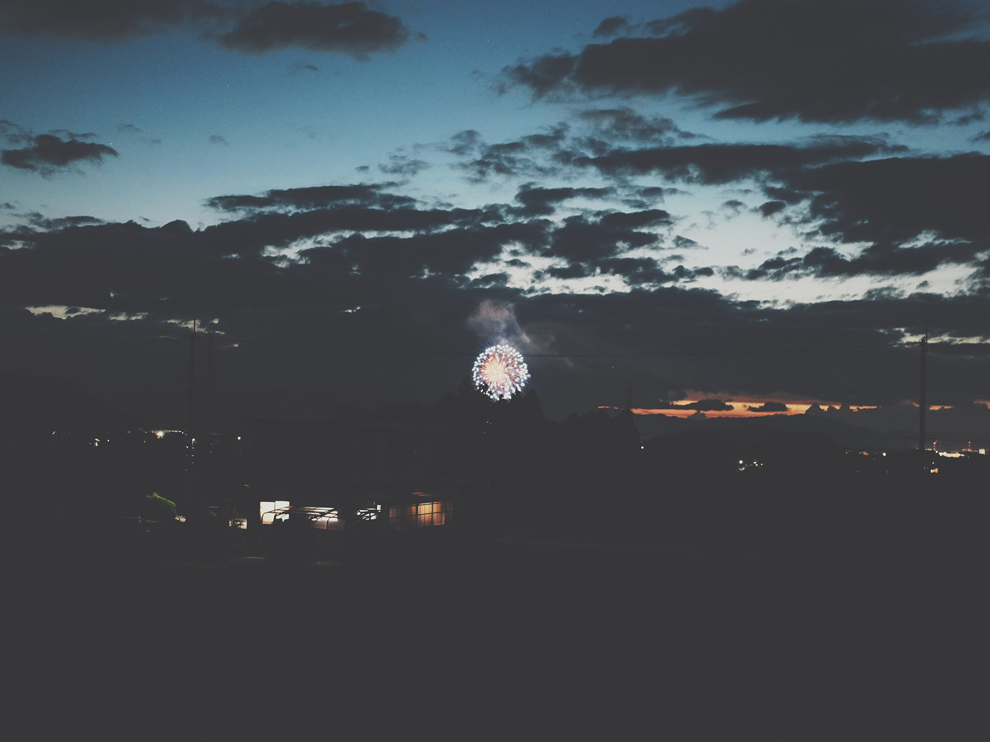 今年最初の花火を2階の部屋から眺める。