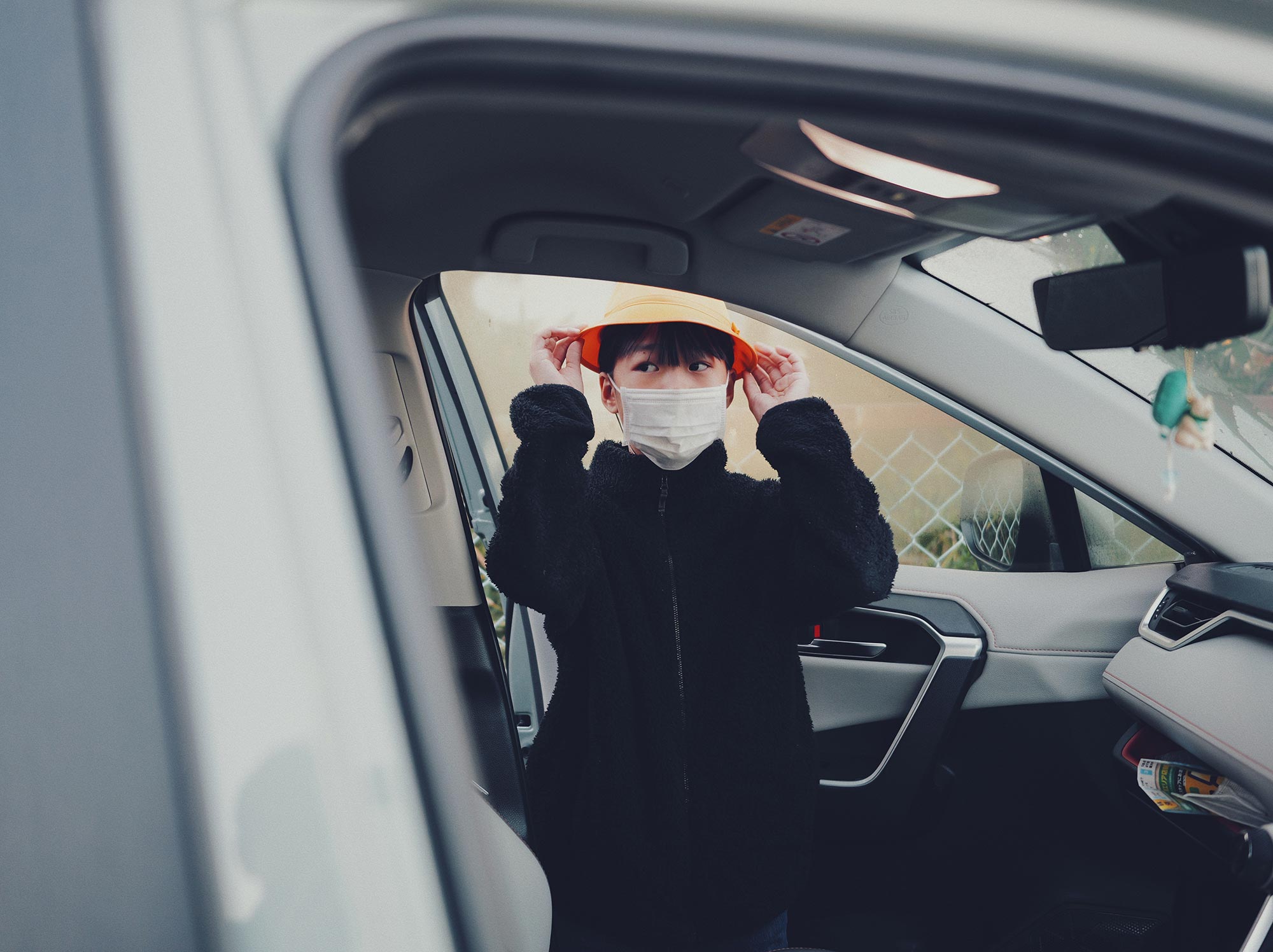 こころさんは修学旅行。微妙な体調のまま(熱はなし)車で学校まで送る。