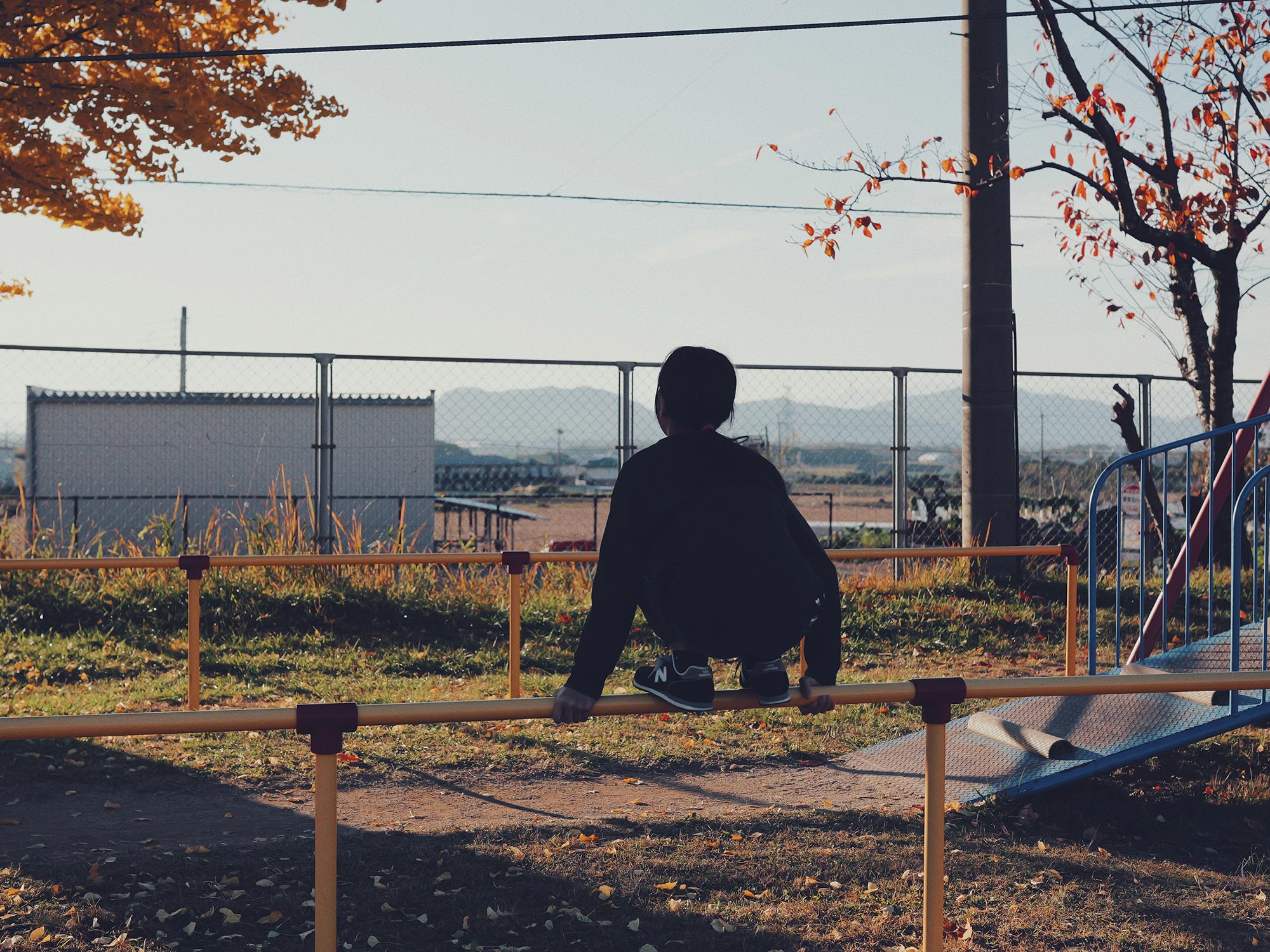 池の一周はすぐに終わってしまったので、少し離れた中学校のグランドまで移動する。ここは何故か開放されているし、遊具もしっかりしているので気に入っている。