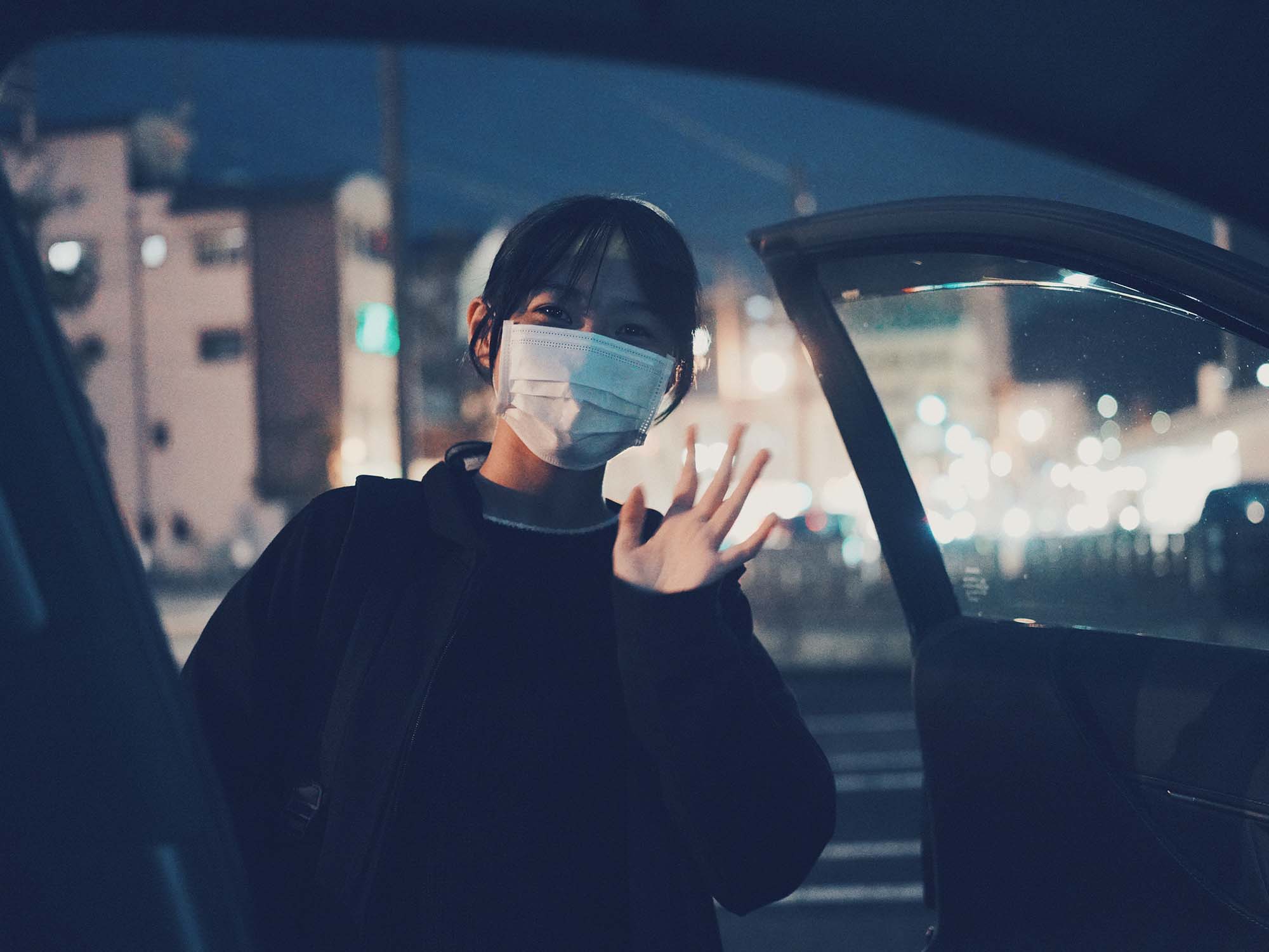 夕方は塾の送迎。いつも車から行ってらっしゃい写真を撮っている。